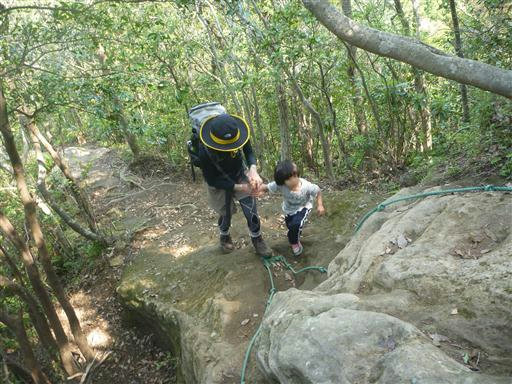 今度はロープのある岩場。簡単な岩場だが落ちると危険。