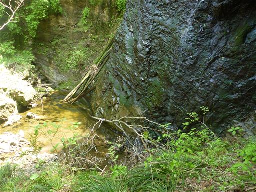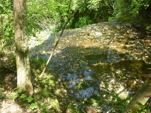 滝の上流部。水がチョロチョロと流れている。