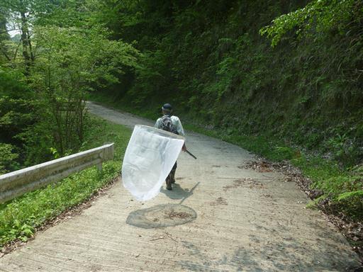 大きな虫取り網。カミキリムシなどを狙っていたが収穫は無し、とのことだった。