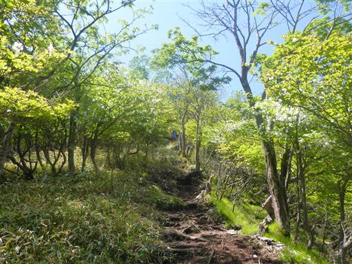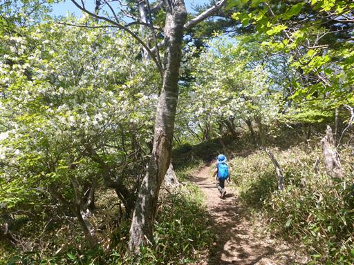 登山道にシロヤシオが現れる。今回の山行の目的の1つはシロヤシオ。