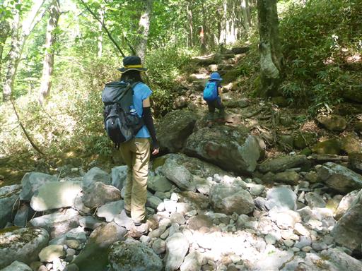 美しい樹林帯の中を登る。うるさいくらいのハルゼミの鳴き声と、