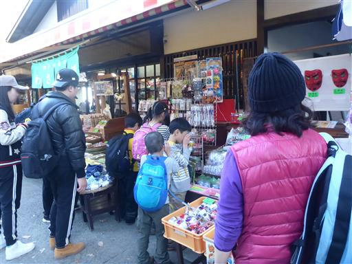 売店が軒を連ねる。子供たちは引っ掛かりまくっている。