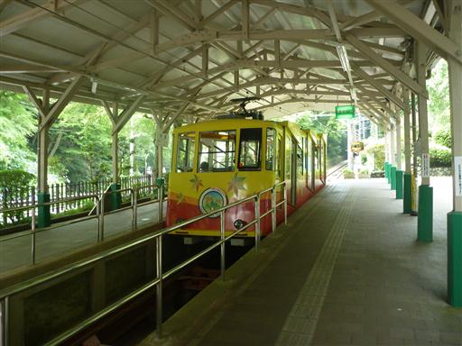 大好きなケーブルカーに乗って子供の機嫌を取りつつ上に向かう。