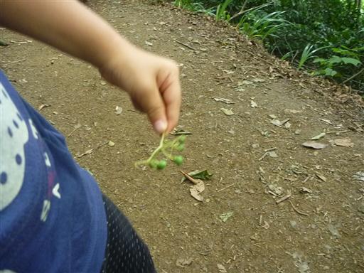 途中で何かの実を拾って遊びだす。たくさんの実を手に入れて満足そうだ。