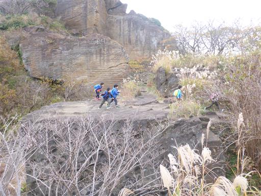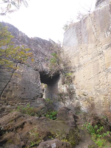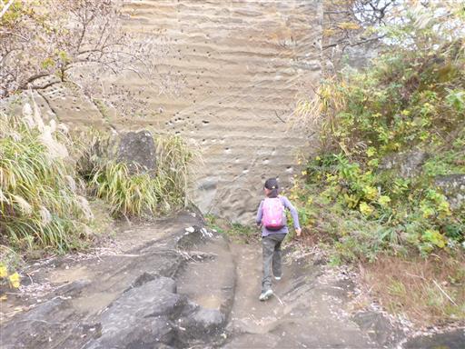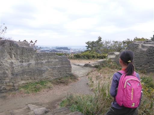 岩に大きな穴が開いている。鋸山と似た風景だ。