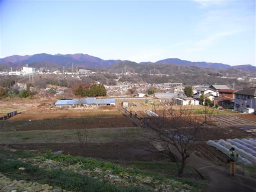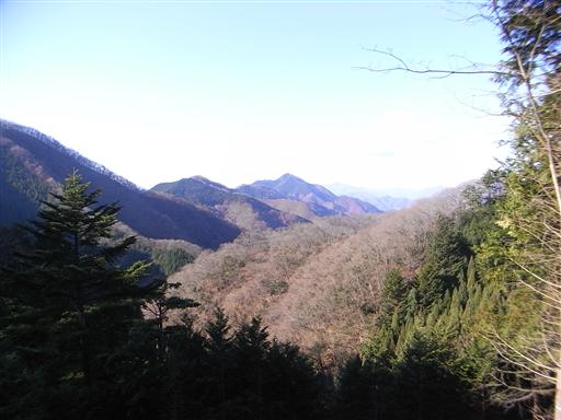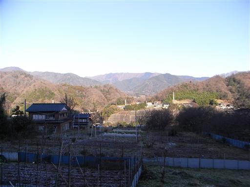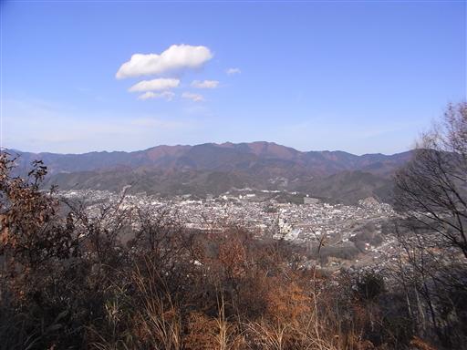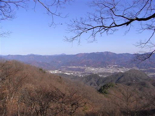 南の方角だけ展望が開けている。遠くの方に奥多摩の御前山と大岳山が見えている。