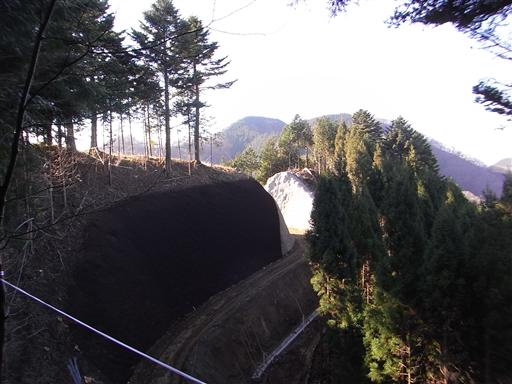 途中で造りかけの林道の脇に出てくる。