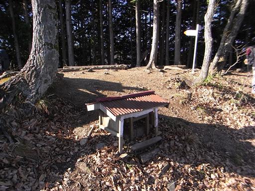 山頂部は樹林に覆われていてあまり広くない。