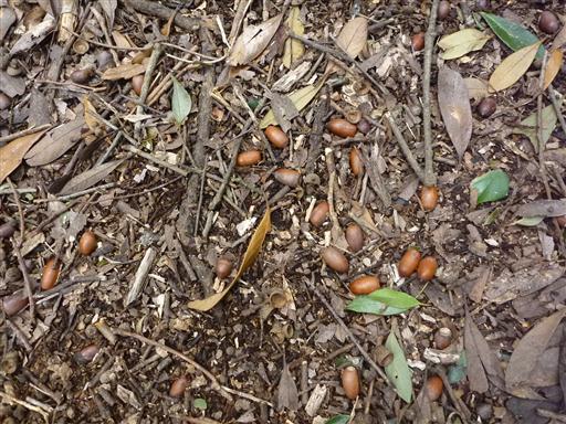 足元にはドングリが無数に落ちている。これほどドングリだらけの登山道は初めてだ。