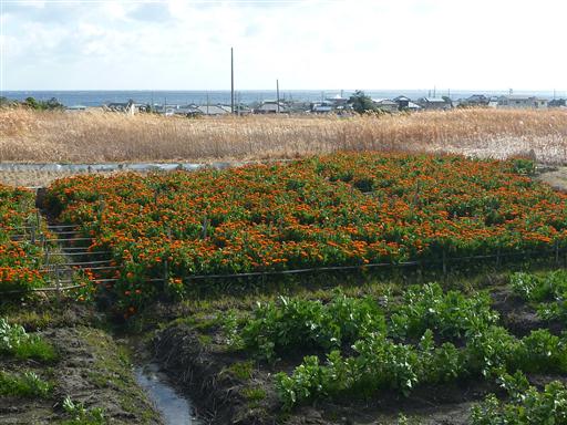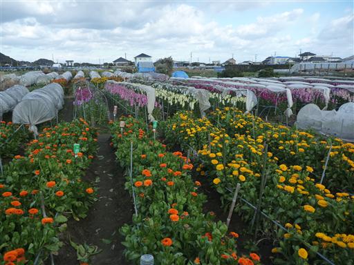 この辺りは温暖な気候を利用して、冬は花の栽培がおこなわれている。