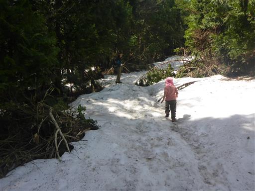 途中から残雪が現れる。山頂まで20分ほど雪と格闘する。