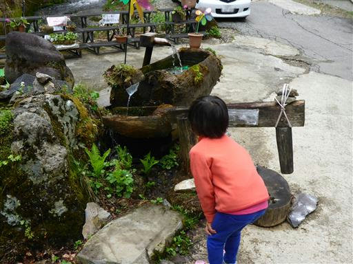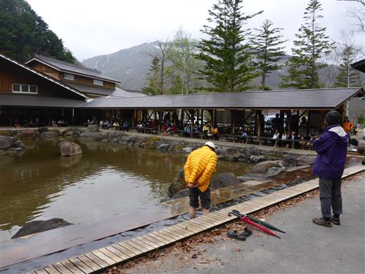 駐車場の側にあった足湯に寄って行く。平湯温泉の湯だ。
