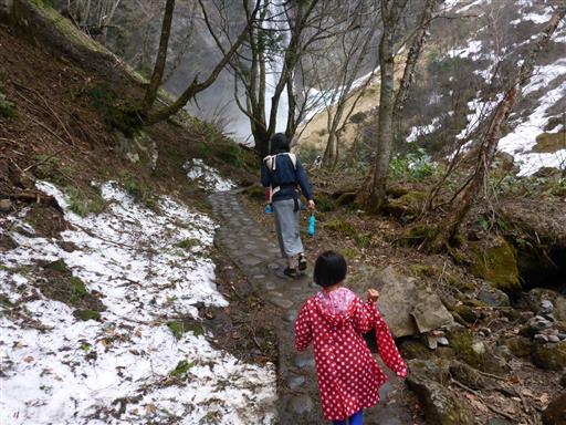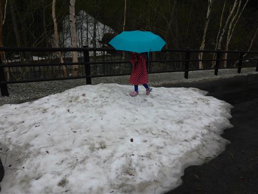 娘はあえて残雪の上を歩いている。