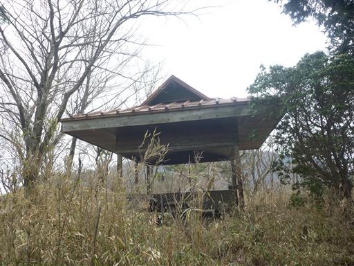 しばらく登ると小ピークに到着する。寂れた東屋が建っている。