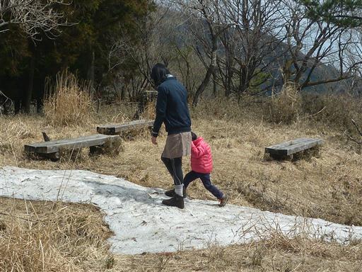 昼食が終わったら山頂に残る雪で少し遊ぶ。
