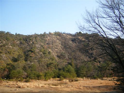 川をはさんだ向こう側には岩が露出した尾根が見える。