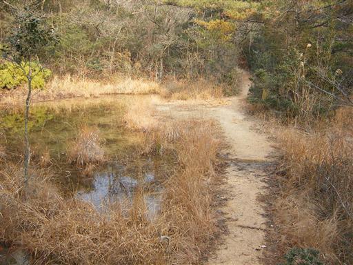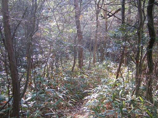 登山道に到着。アップダウンの少ないゆるやかな道が続く。