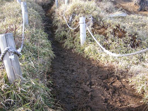 気をつけて歩かないと、靴もズボンも泥だらけになってしまう。