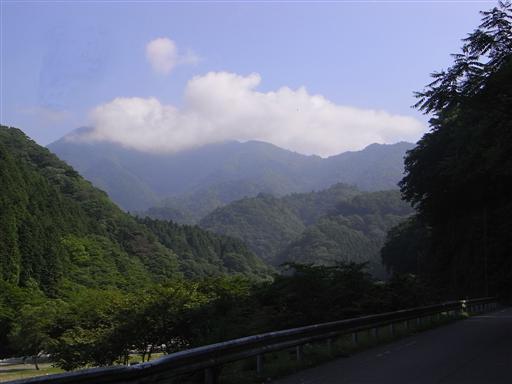 もう新緑の季節は終わり、山は濃い緑に覆われている。
