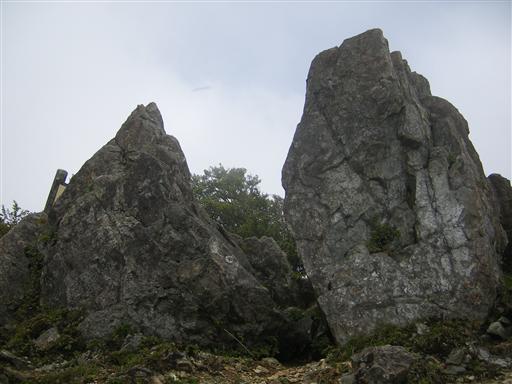 鬼ヶ岩ノ頭に到着。ここから真正面に蛭ヶ岳が見えるはずだが、