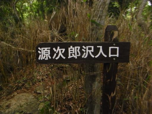 源次郎沢入口の標識。沢登り用のルートにまで案内標識があるとは驚きだ。