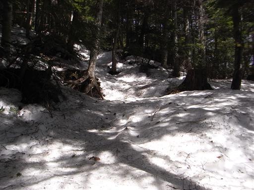 だいぶ雪は少なくなっているが、雪に覆われているためルートが見えにくい。