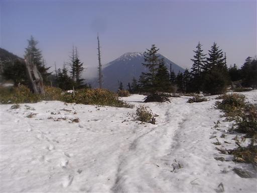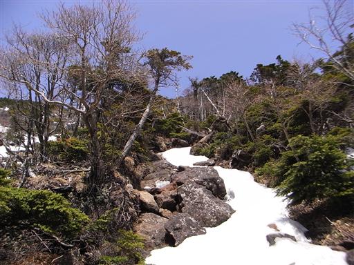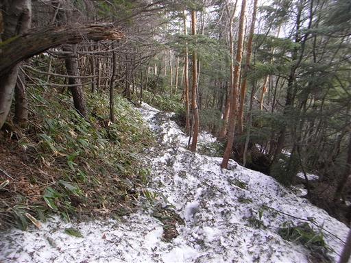 木が少ないところは雪も少ないのだが、基本的に登山道は雪に覆われている。