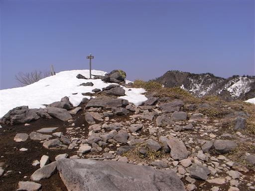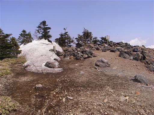 登山道にはあれだけ雪があったのに、山頂にはほとんど雪がない。