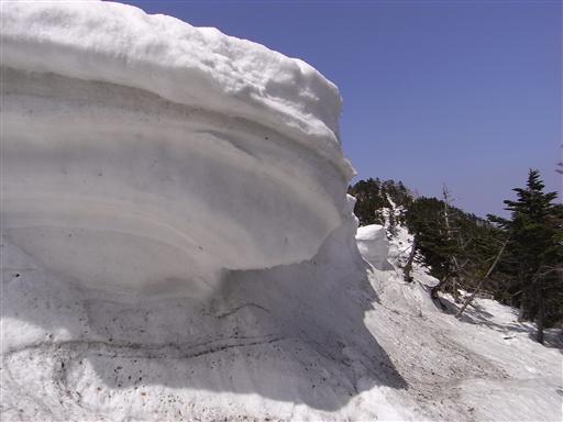 この辺りは雪が吹き溜まりとなっている場所が多く、高いところでは3m位の雪がある。