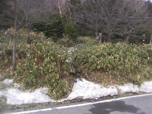 下山近くになると雪もほとんどなくなり、笹薮が現れる。