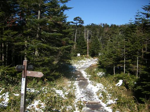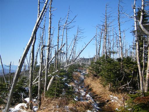 登山道は樹林帯と立枯れ地帯が繰り返される。