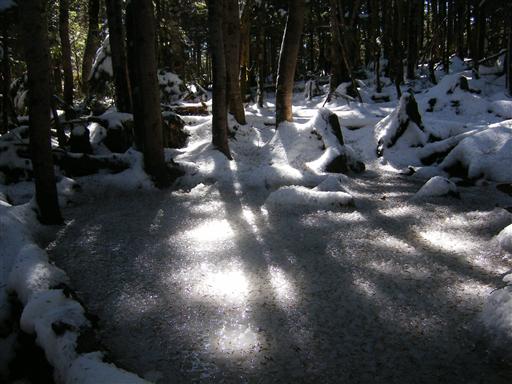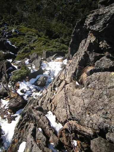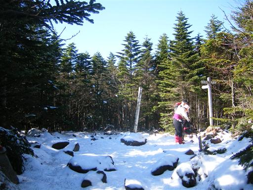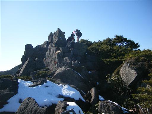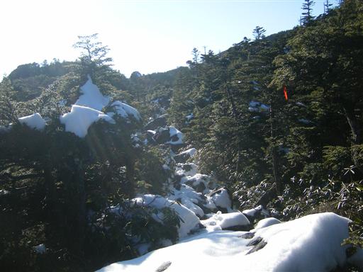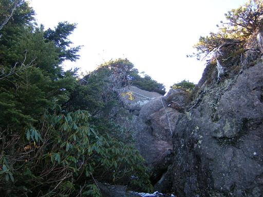 雪が積もっているので、岩の上はスリップして歩きにくい。