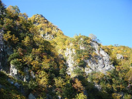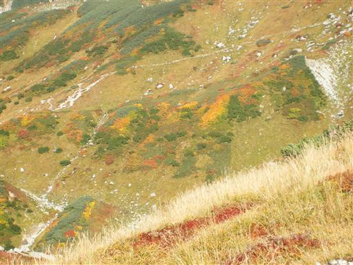 中腹からはきれいに彩られた斜面が見える。