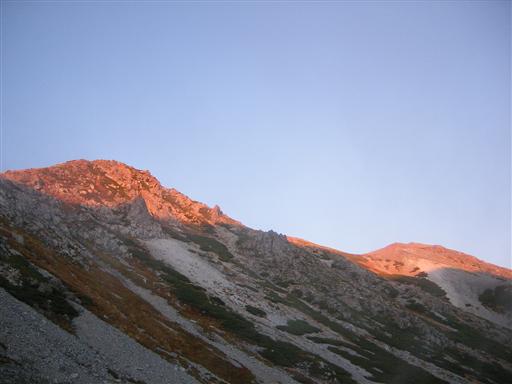 裏手にそびえる立山にも夕日が当たる。