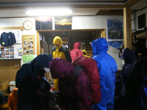 6:20 雨具を着て小屋出発。