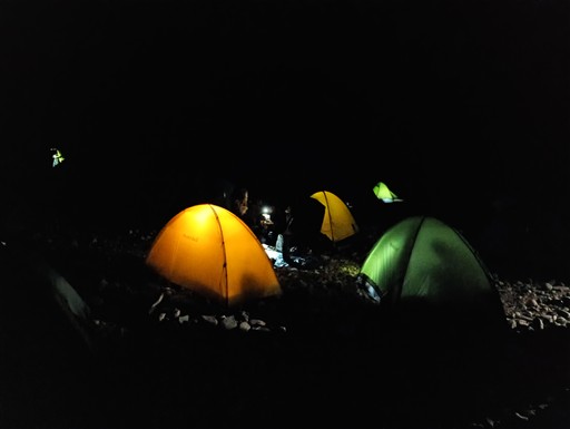 少し道が広くなったこの場所でラーメンを作って食べる。