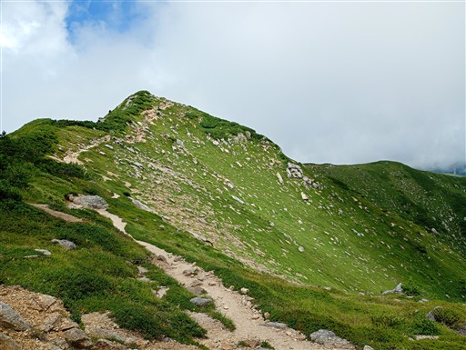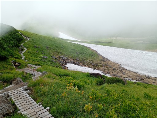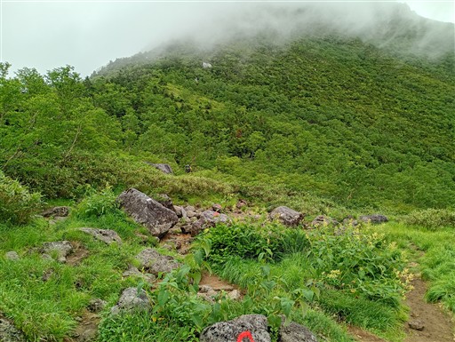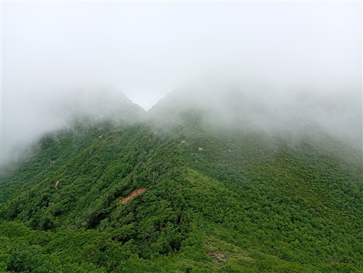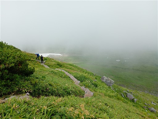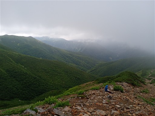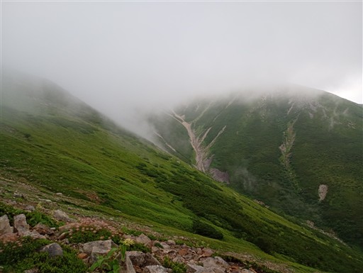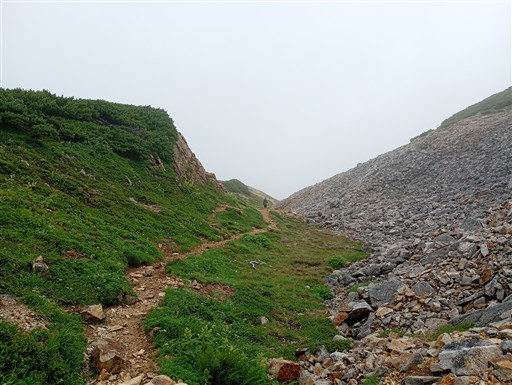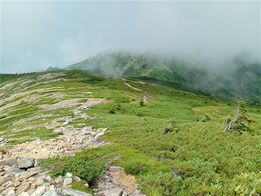 この辺りまでは辛うじて展望が広がる。ここから雲の中に突入だ。