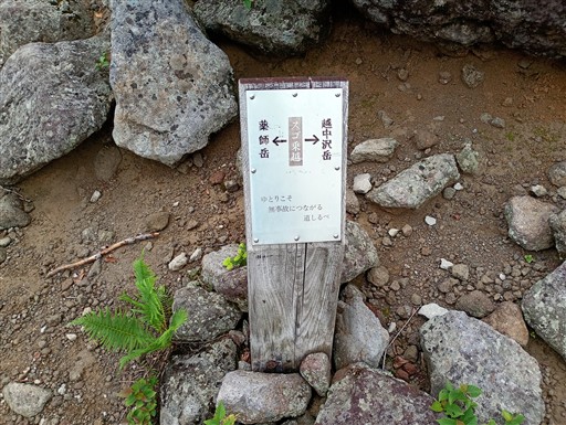 スゴ乗越の標識。ここから越中沢岳への登りがきつそうだ。