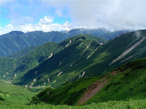 雲の下の方に、黒部川上ノ廊下が見えている。