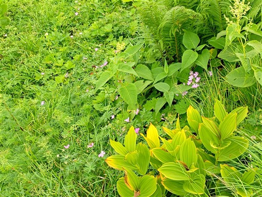 まだ雪が多く残っている。雪の近くでは初夏の花が見られるのでありがたい。