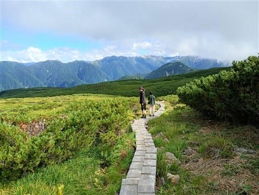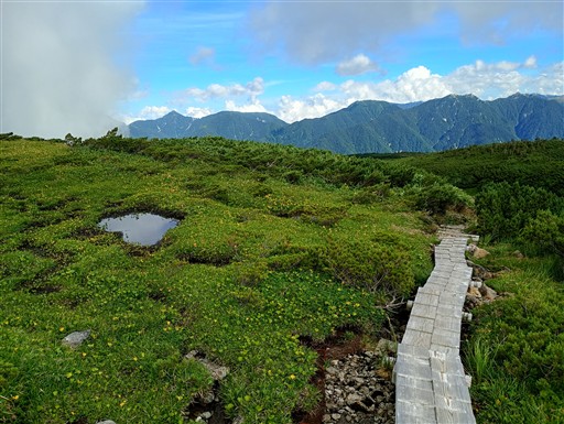 ここはもう五色ヶ原の一角。緩やかな木道を下っていく。