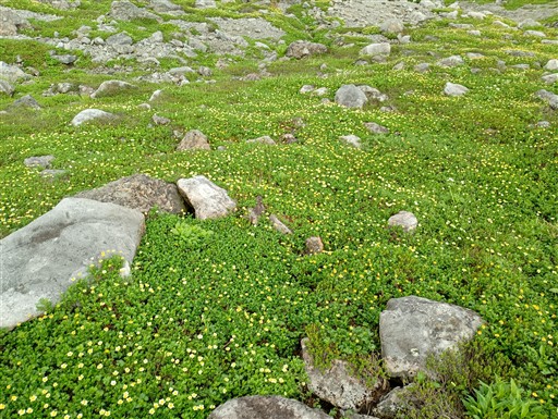 この辺りはチングルマが斜面を埋め尽くすように咲いている。