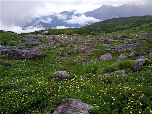 近くにライチョウがウロウロしていて、本当に山上の楽園という感じだ。