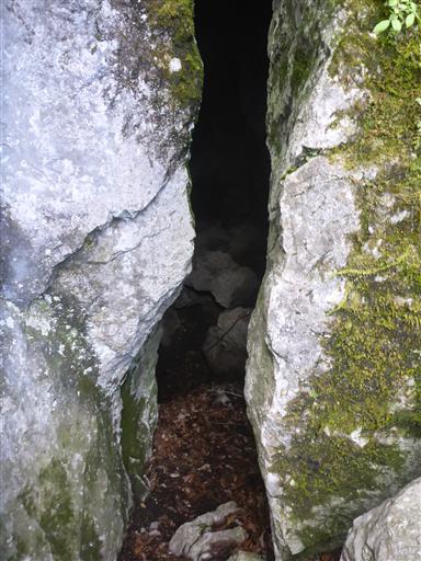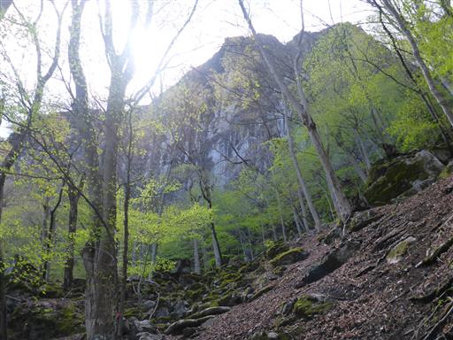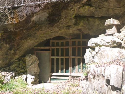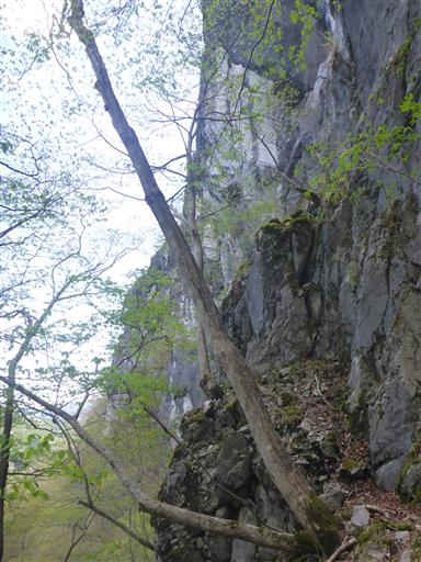 この大きな岩壁の基部に鍾乳洞入口がある。
