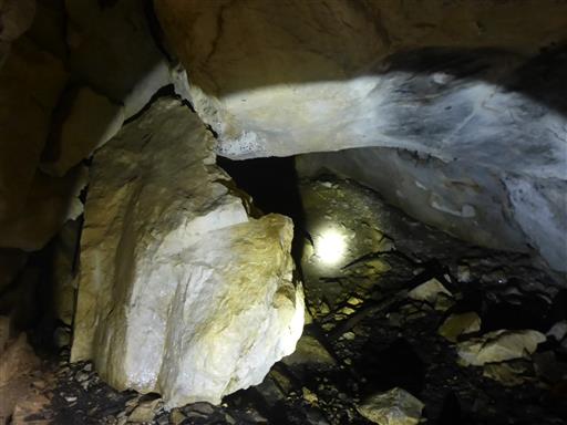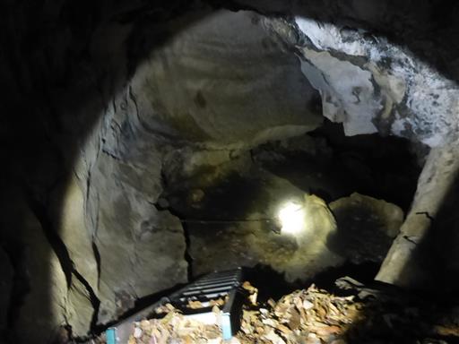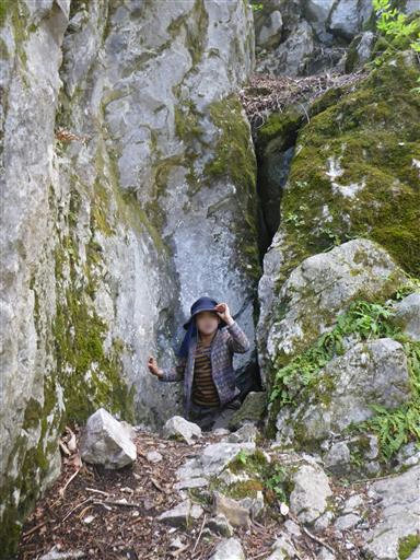 その先は傾斜が急になって歩きにくいので一人で探索。2個目の梯子が見つかる。
