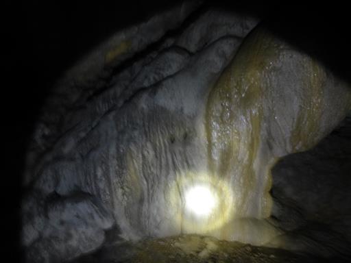 天井に光を当てると鍾乳洞っぽい景色が広がる。