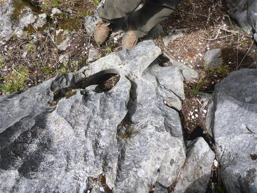 水に溶けやすい石灰岩はあちらこちら穴が開いている。