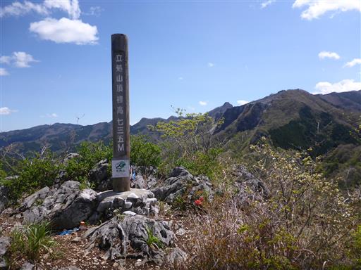 | ルート (Map) | 恐竜の足跡駐車場 (8:44) - (9:30) 登山口 - (10:15) 立処山鍾乳洞 (10:52) - (11:06) 立処山 - (11:25) 昼食 (11:45) - (13:07) 明家 (13:41) - (13:48) オバンド峠 - (14:24) 車道 - (14:38) 恐竜の足跡駐車場 |