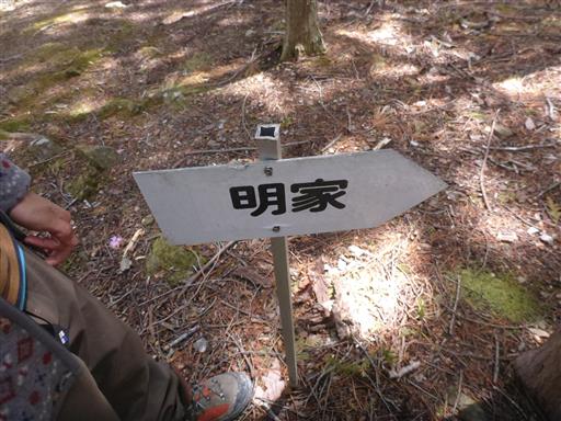 登山道を少し引き返したら、分岐点から明家に向かう道を歩く。