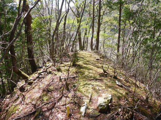 気持ちの良い尾根道。苔に覆われていてあまり人が歩いた形跡がない。